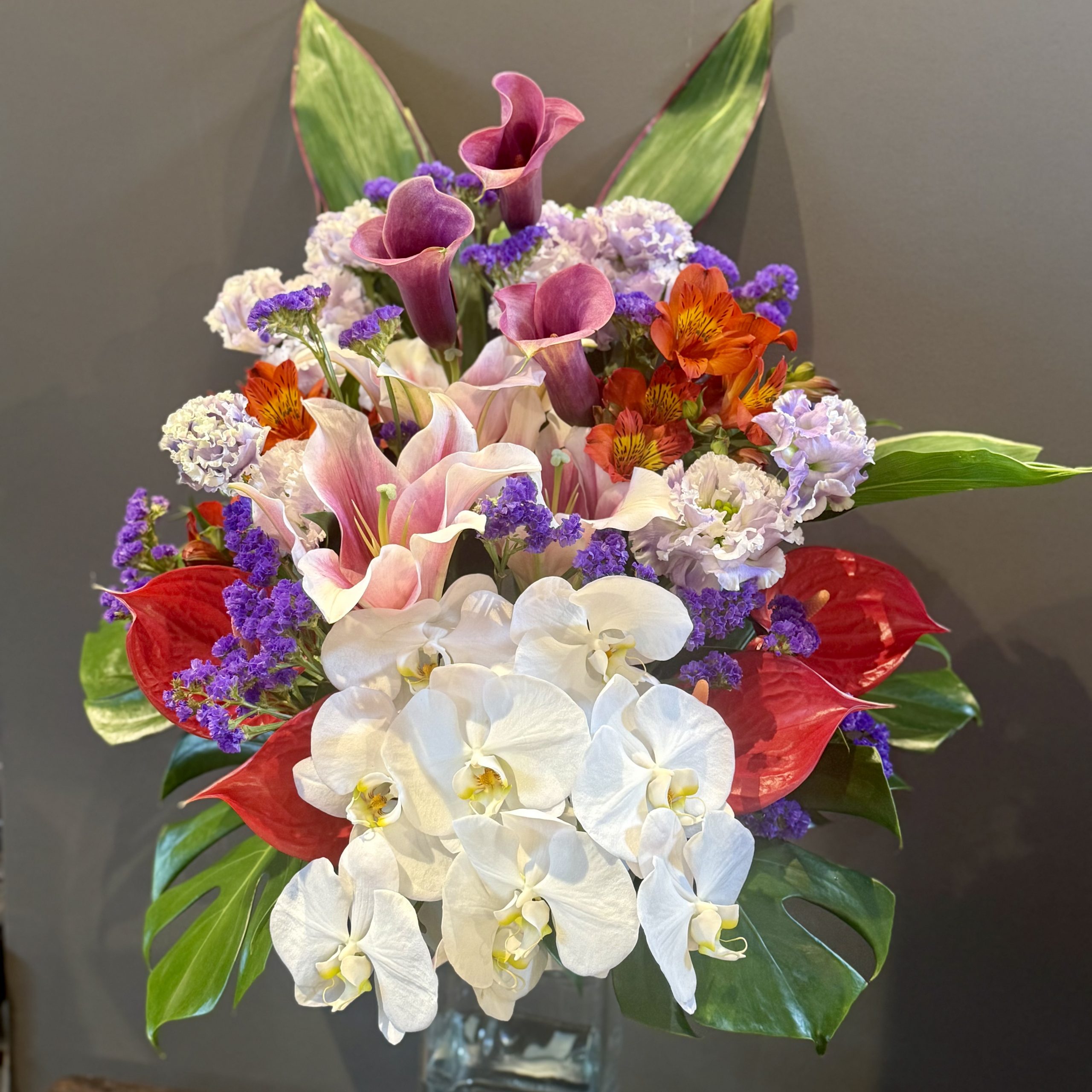 タグ: Anniversary, アレンジメント, アンソリウム, カラー, ユリ, 個展, 出演祝, 御祝, 御誕生日, 胡蝶蘭, 記念日, 設立記念, 銀座, 開店